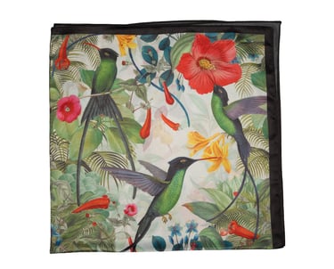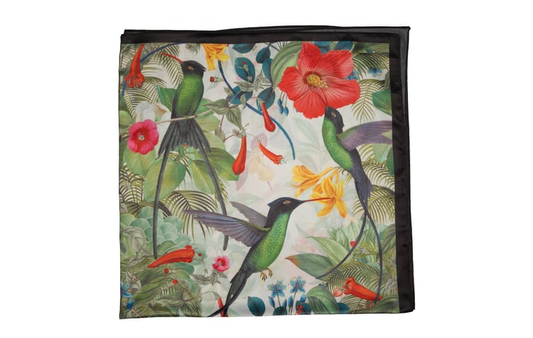 Custom printed silk scarves and pocket squares developed for brand and gifting use.
